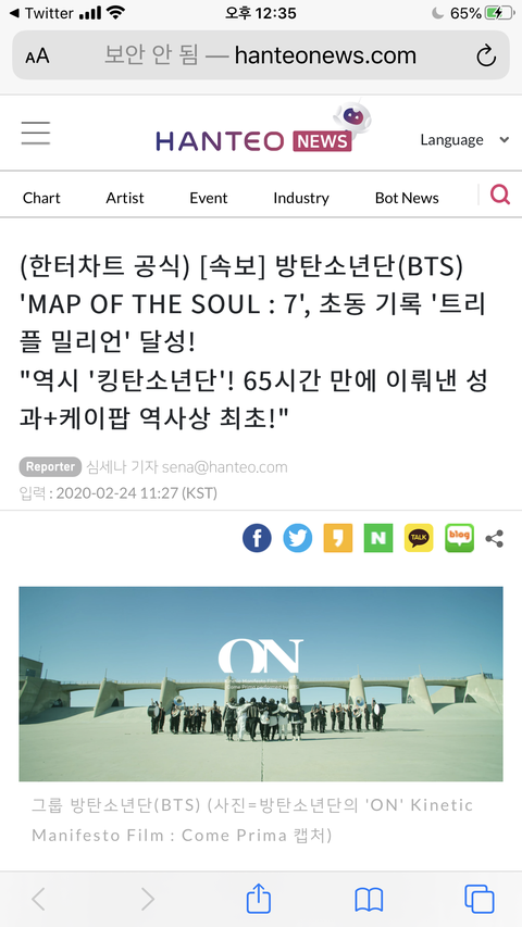 한국 기사도 아니고 오피셜도 아니라 딱히 신빙성은 없음