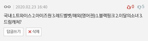 현실은 곧 늙어뒤질 너랑 다르게 장카설유 전원 00년대 젠지세대 응 ㅋㅋㅋㅋㅋ 앞날 파릇파릇한 젊고 이쁜 여돌들 부럽죠? ㅋㅋㅋㅋ