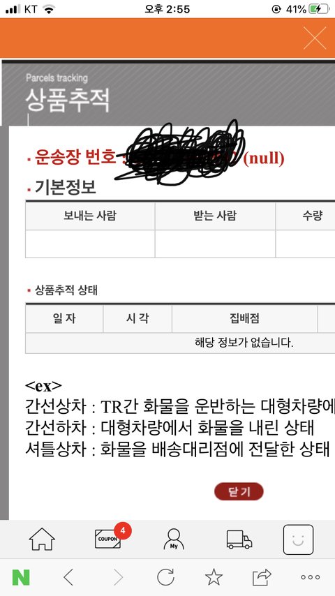 공구한 이삐중에 저렇게 배송중이라 떴는데 아무것도 안뜨고 운송장 번호 옆에 null이라고 뜨는 이삐들 있니??