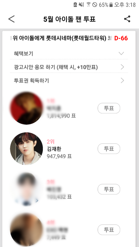 지금 덕애드에서 투표 2위ㅠ5월 생일자중에 투표해서 1위는 롯데타워 롯데시네마에 광고 걸어주는건데제발 1위하자 재화니ㅠㅠ