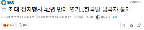 中 한국발 입국자 통제