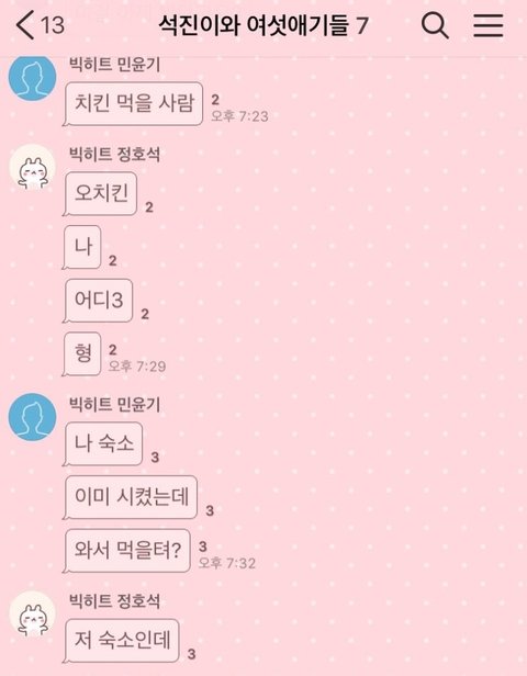 주로 막내라인들이 이런 장난 많이 치는것 같엌ㅋㅋㅋㅋㅋ (+ 홉이 예외ㅋㅋㅋㅋㅋ)