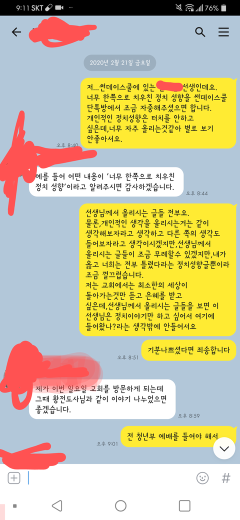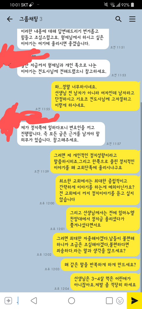 아무튼,(현재 지금도 )이 이후로 갠톡에선 아무말이없고 계속 정치글을 마구 올리고 있어요.