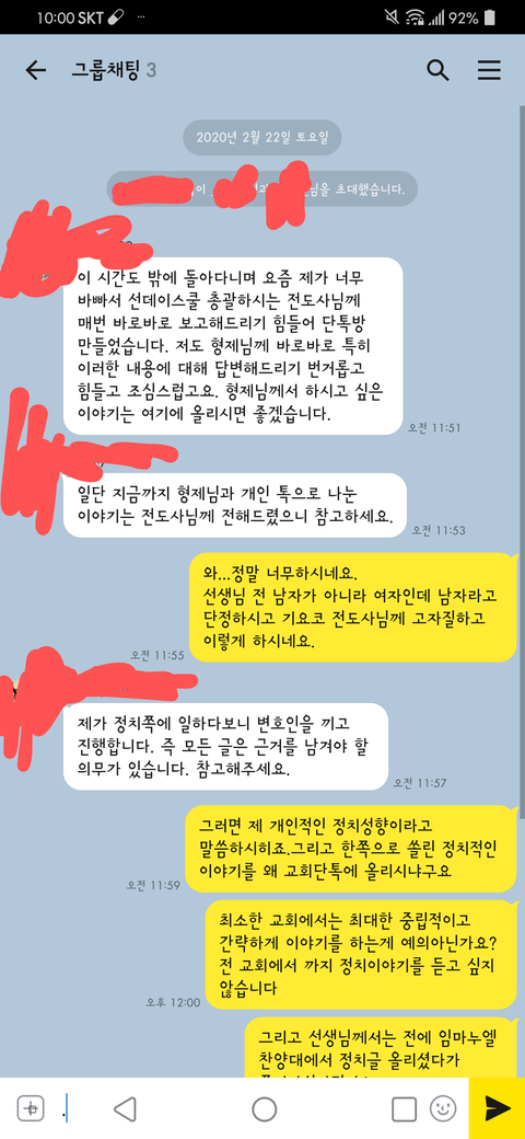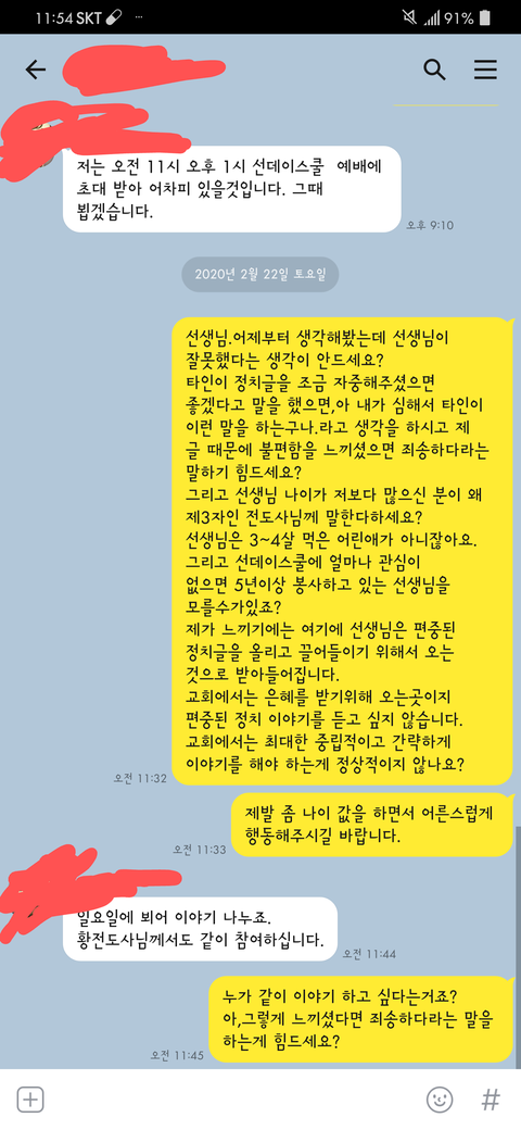 그리고 전도사님께 무슨 이야기를 한지 모르겠지만,전도사님께서 얌전히 있는 사람에게 왜 이런말을 하게해서 심란하게 만드냐,겨우겨우 모시게됬는데 그런말을 해서 다음날 은혜받지못허게 막느냐,니가 사회생활안해봐소 모르는데 그런식으로 했다간 고립될수있다.라는 식으로 절 깎아 내리더라구요.