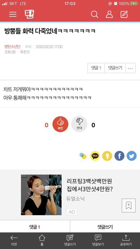 방뽕들 화력 다죽었네ㅋㅋㅋㅋㅋㅋㅋ