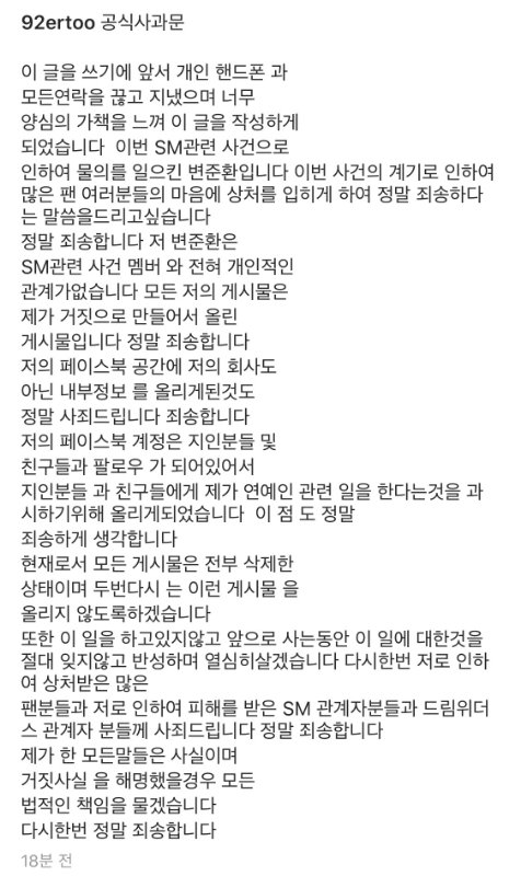 근데 저렇게 법적 처벌 받는게 쟤한테 더 나을수도 있음 엔시티팬한테 뒤지게 처맞는거보단 신상다털리고 있더만