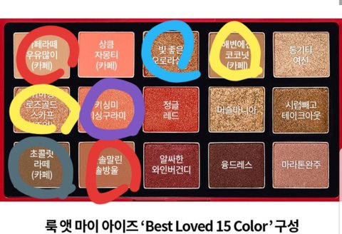 섀도우 이름이 다 길어서..ㅎㅎ 동그라미 친 색으로 지칭해서 설명할게!