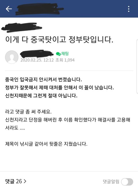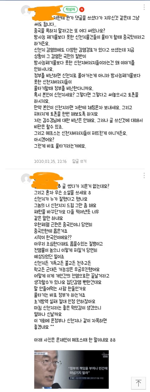 지금 정부탓이라고 말하는 사람들은 신천지라는 둥