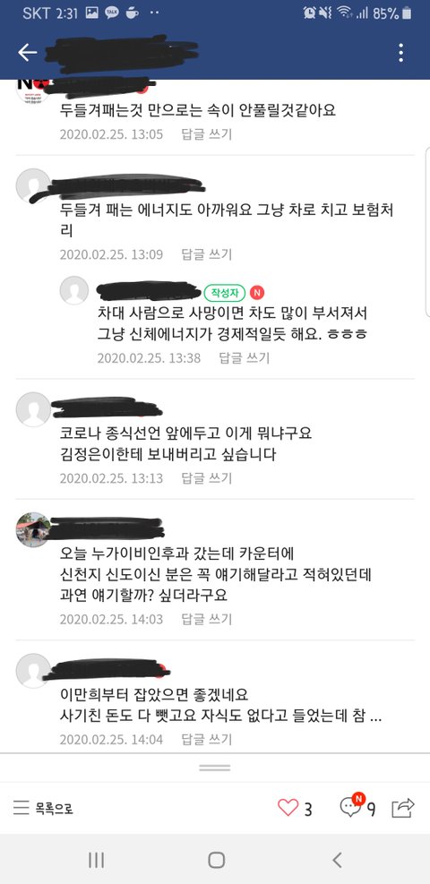 물론 정부가 잘못한다고 말하는 사람에게는 공격적인 댓글들이 줄줄이 달리고요.