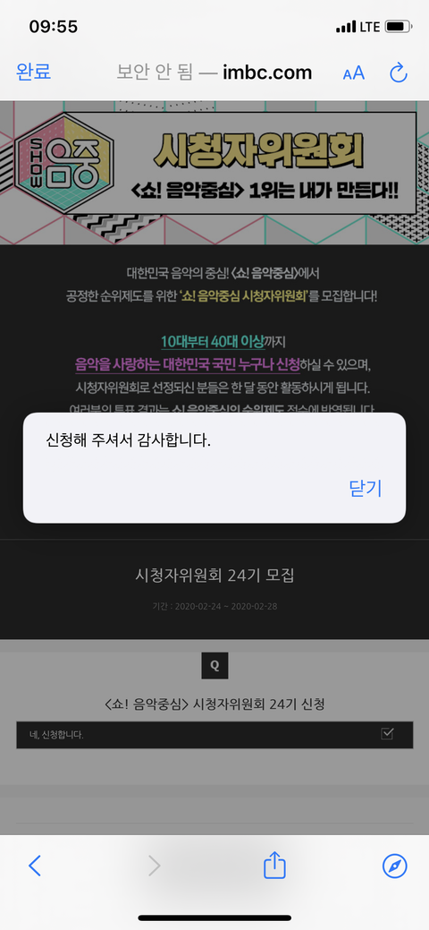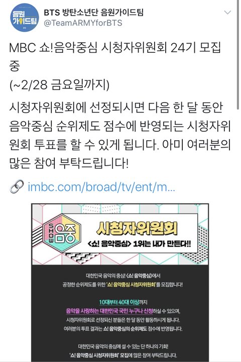 뮤직중심 시청자 위원 신청하고 오자 ㄱ
