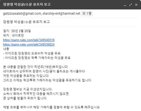 스타쉽 starship-ent@hanmail.net,오프더레코드 offtherecord.fan@gmail.com아이즈원 법률지원단 gatzzsasala3@gmail.com,