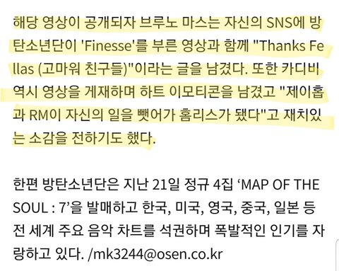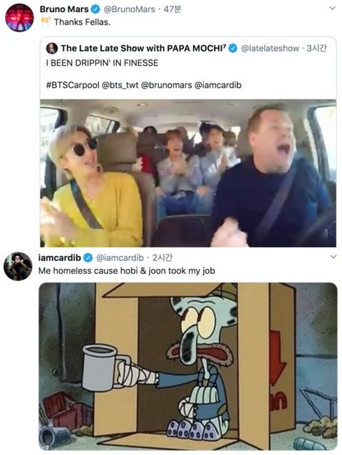 브루노ㅁㅏ스, 카디ㅂㅣ 애들 언급