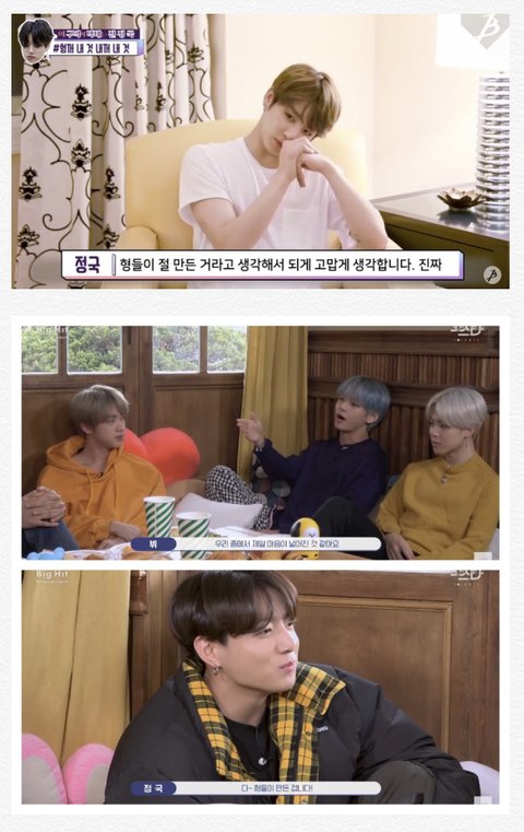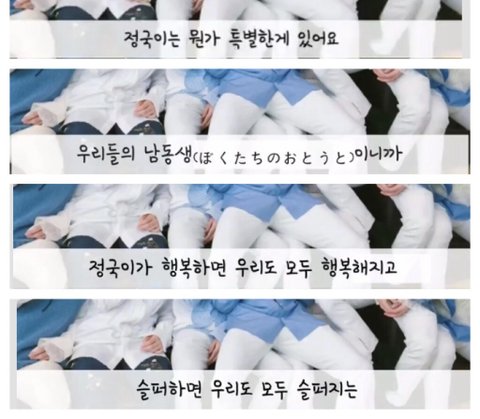 15살에 서울에 상경해서 형들이랑 살면서 정국이 정체성 확립할 시기에 형들이 많은 부분을 차지했어