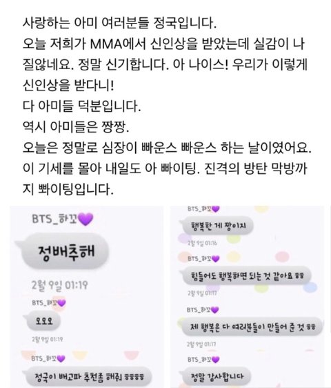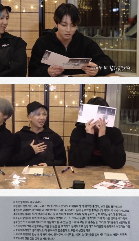 아미들한테 쓴 편지 낭독하다가 잘하겠다는 말과 함께 울음터진 정국이도