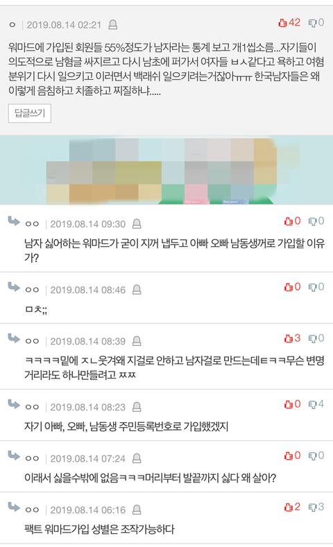 ㅋㅋㅋㅋ 그래 워마드 회원 절반이 남자라고 치자 그럼 여자 인증해야 활동가능 한 여시 쭉빵에서 남혐글 쏟아져나오는 건 어떻게 생각해?