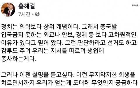 대통령과 여당을 조금만 비판해도 지지자들이 집단린치를 가하는 무서운 세상에서 저렇게 소신있는 발언을 하시기 쉽지 않으셨을텐데 정말 대단하시네요. 존경합니다