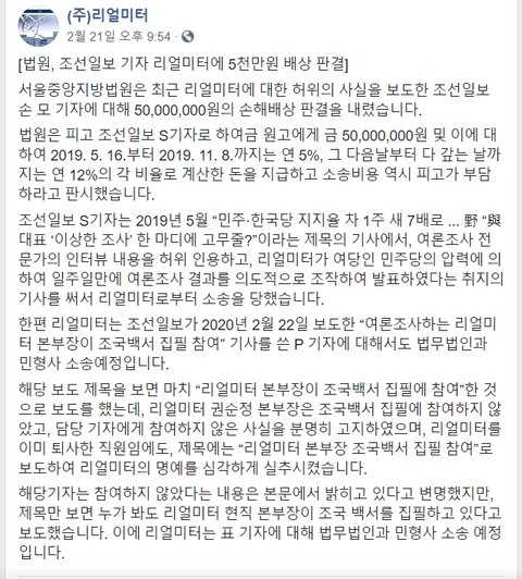 허위사실 유포한 조선일보 배상 판결