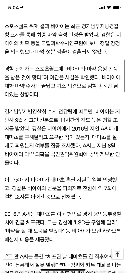 다들 비아이 마약했다고 요했었고 비아이는 아이콘 탈퇴하고,, 지금까지도 자숙중이잖아 그런데 지금 기사뜸ㄷ 이거 머리검사는 오년전에했던것도 밝힐수 있는건데 음성으로 나왔다는건 안했다는거 아님,???