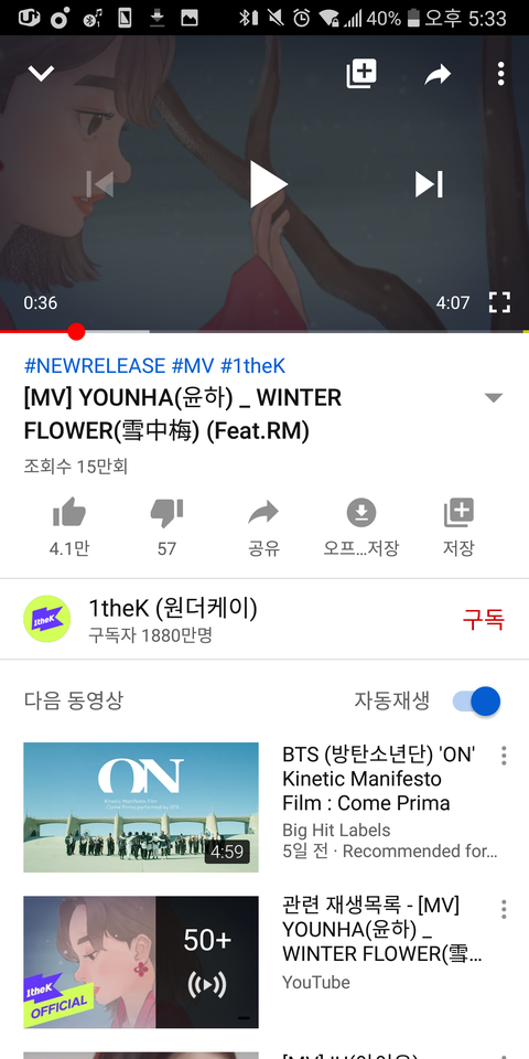 뮵밍하러 들어갔다가 발견했는데 winter flower 뮤비로 나왔더라. 애들 나오진 않지만 그냥 감상하기 좋아서 링크 가져왔어 :)