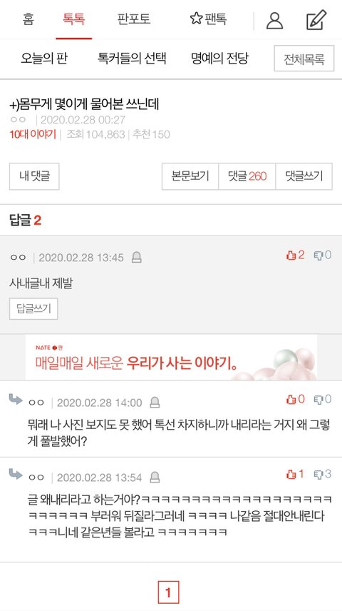 톡선 안내려서 미안한데 나 댓글 쓰고 다닌 적은 없어