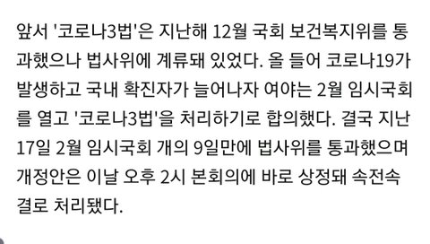 사실 코로나 3법은 코로나가 우한에서 막 시작되던 작년 12월에 보건복지부 대표로 발의되었음