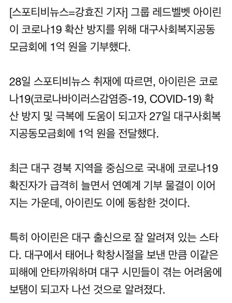 +)) 아이린도 고향 대구에 1억 기부했대ㅠㅠㅠㅠ그래서 제목 바꿈