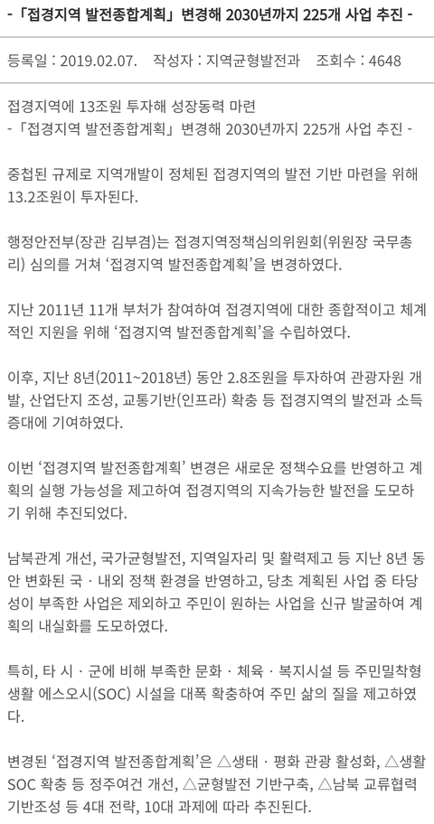 2) 접경지역 사업계획