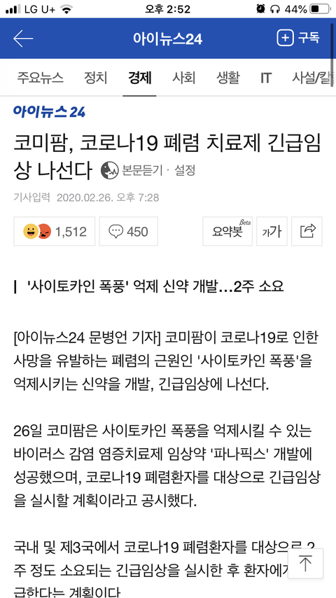 코로나 신약 개발완료됐고 임상실험 중이라는데 이거 지금 빨리 지금 큰힛에 알려야 되는거 아니야..?