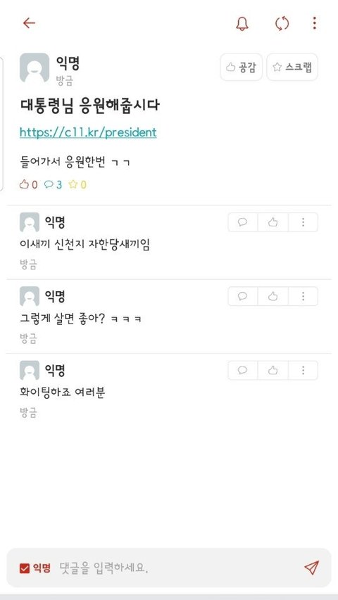 일반 글은 그 지지자랑 (타칭) 토착왜구들이랑 엄청 싸우는데 말이지?