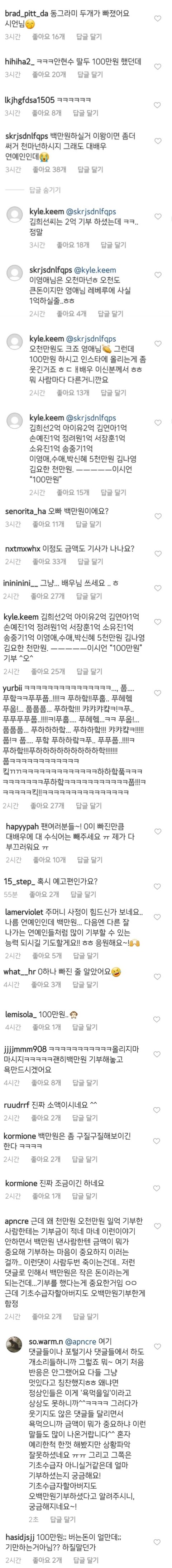 유세윤의 기부소식에 100만원을 흔쾌히 기부