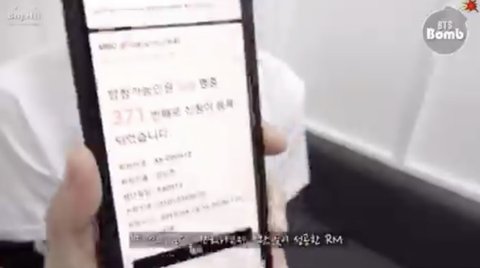 RM은 작은 것들을 위한 시 음악가운데 사전녹화 신청에 371번으로 신청 성공했다.