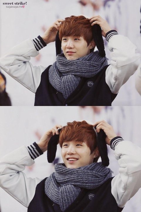 데뷔 초 슈가가 자주 하고 다니던 회색 목도리는 슈가가 서울에 올라오기 전 어머니께서 선물 해주신 목도리다.