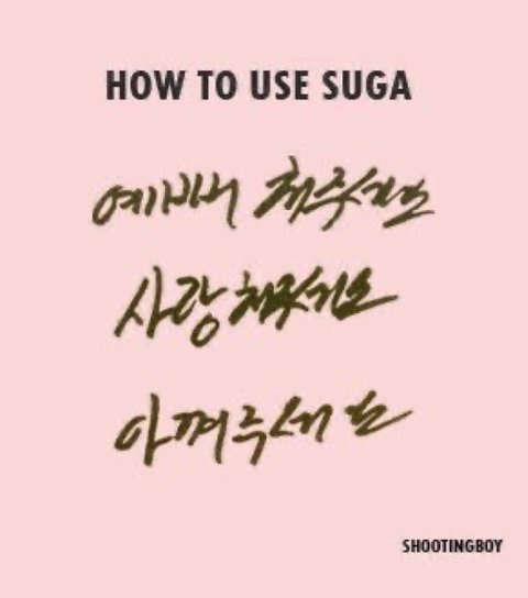 슈가는 팬이 건넨 팬싸 포스트잇에 슈가 사용법으로 '예뻐해주세요, 사랑해주세요, 아껴주세요'를 썼다.