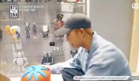 RM은 불이 들어오지 않는 토마토 조명을 켜지게 하기 위해 토닥토닥 해주고 예쁘다고 말해줬다.