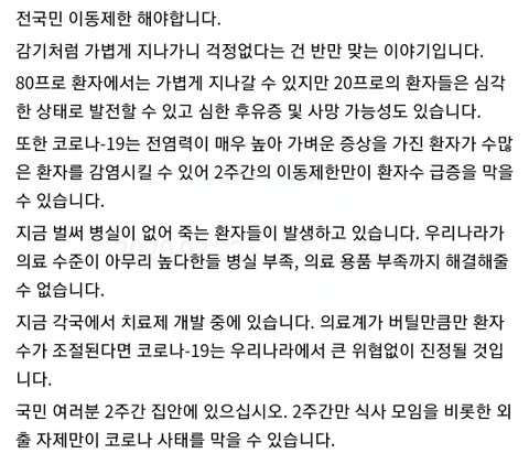 현직의사들이 1주 가능하면 2주 외출 자제 권고하네요