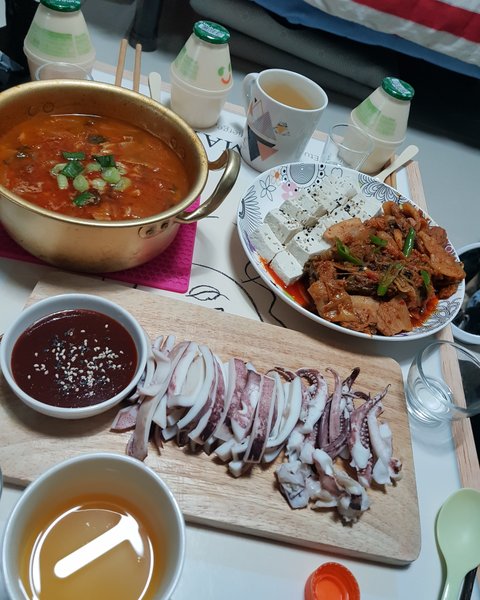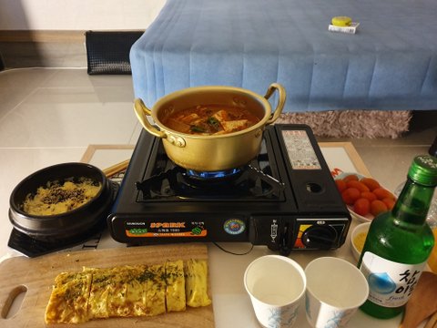 간단하게 돼지고기김치찌가랑 계란말이 계란찜 만들어서 안주로 먹었어요