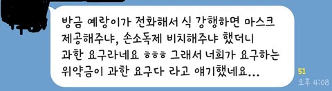 **강행시 마스크나 손소독제 준비해달라고 요청하자 응대