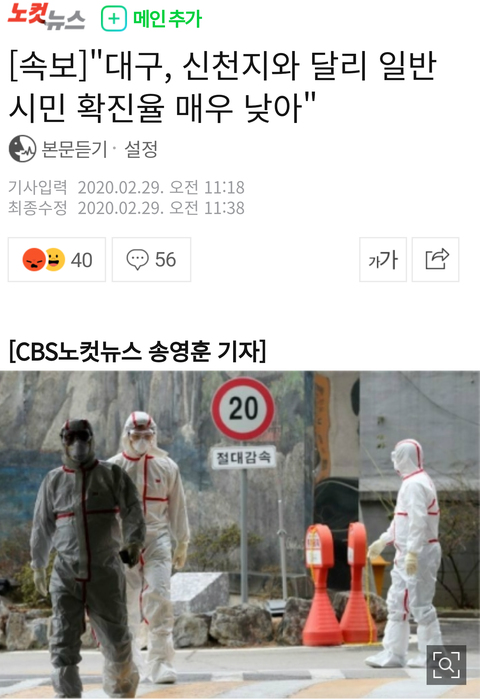 [속보]"대구, 신천지와 달리 일반 시민 확진율 매우 낮아"