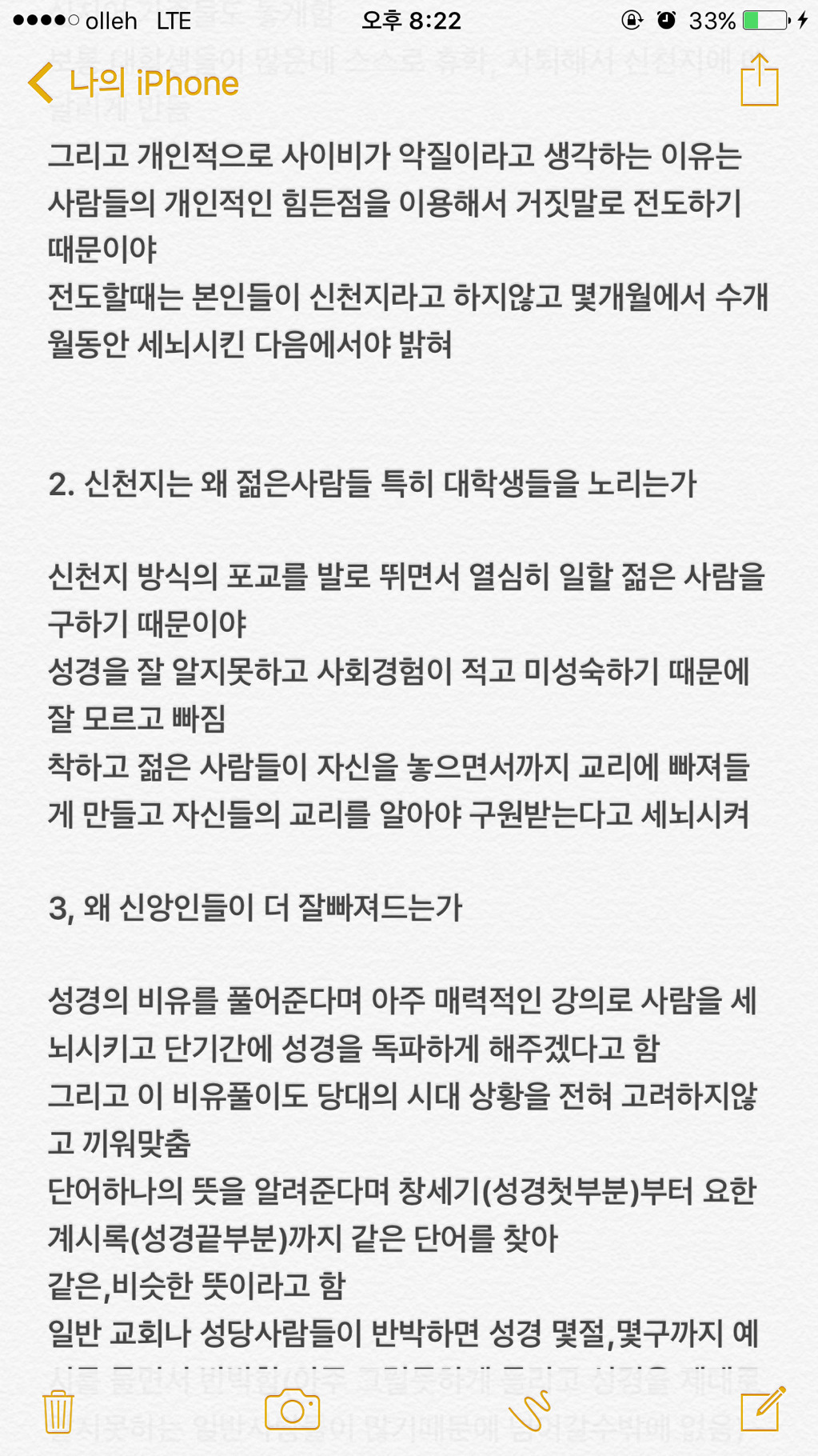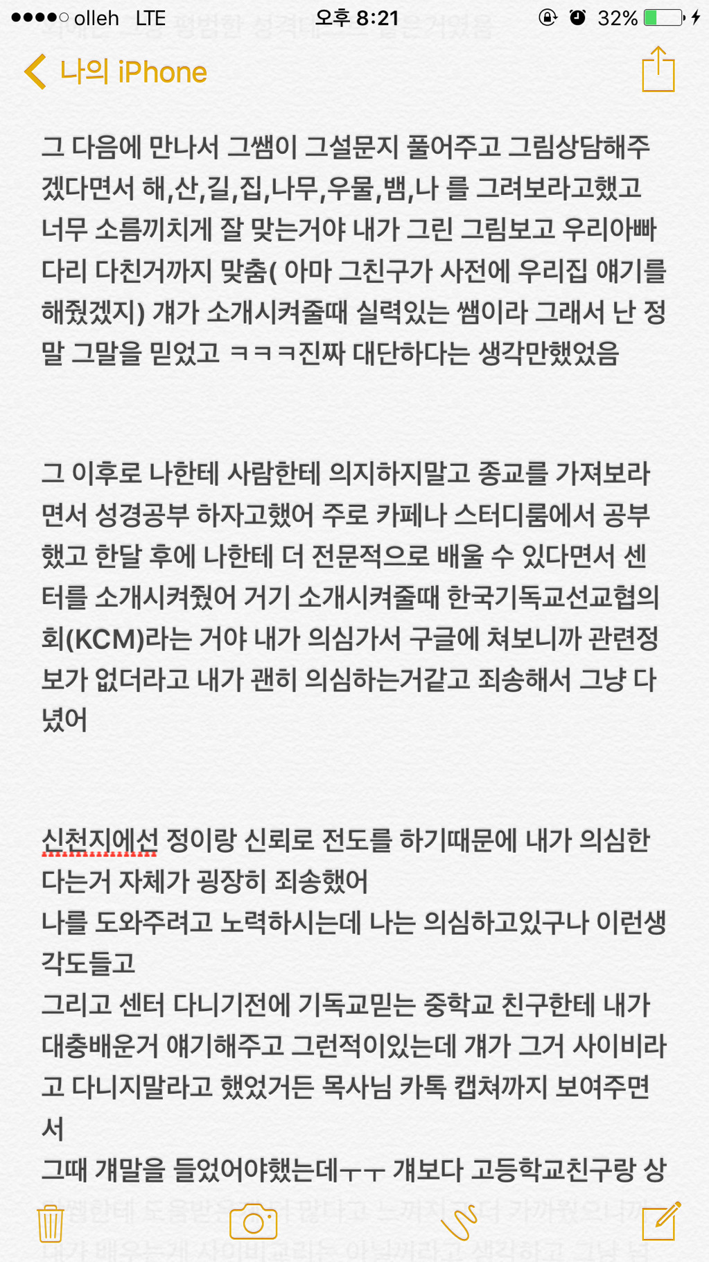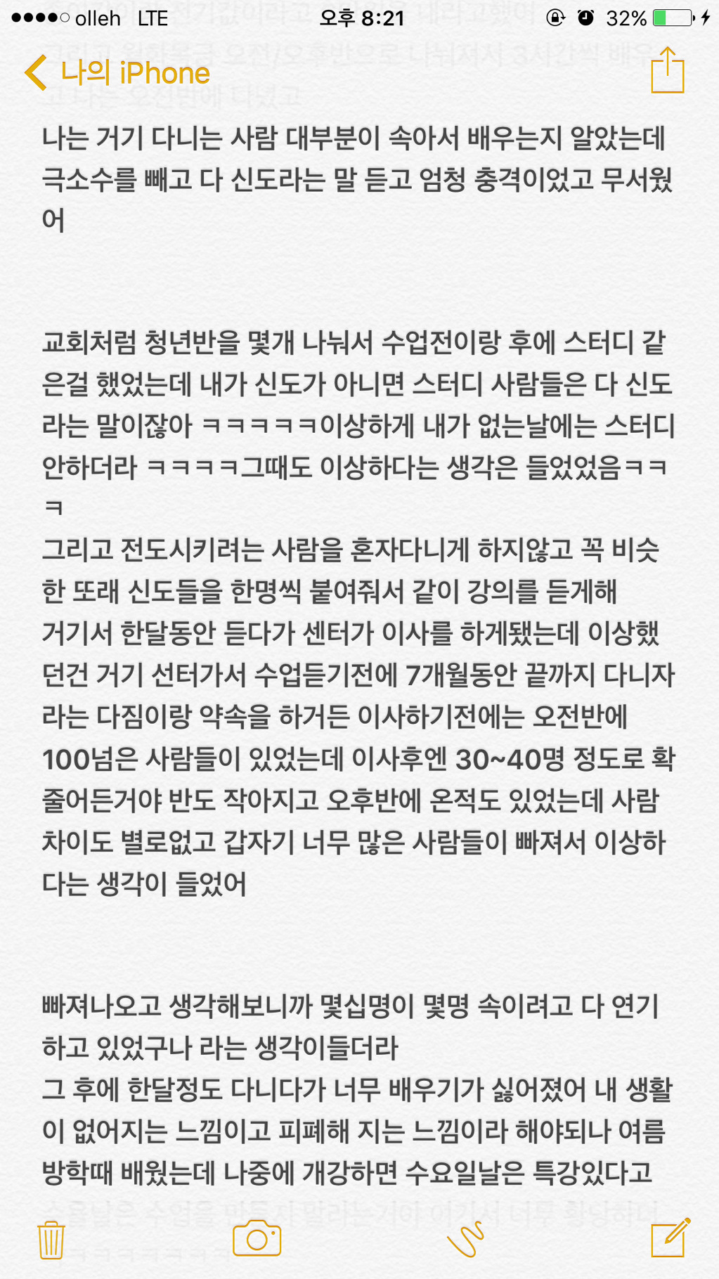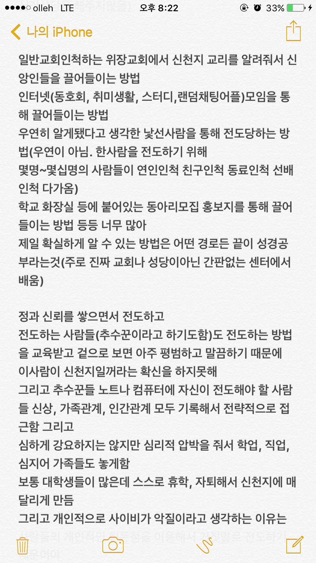 (원글쓴이에게)고생했어.. 나도 복음방앞에서 1인시위하다가 며칠간 미행당해봐서 그거 알아. 한동안은 주변 모든 사람이 신천지로 보이더라. 이제 신천지가 박멸은 안되더라도 숫자가 이전같은 속도로 늘순 없을거야. 너같은 사람들이 이렇게 글을 올려 주니깐. 신천지분들 상담 한번만이라도 들어보세요. 당신들이 이만희에게 속고 있는걸 알게 될거역요.