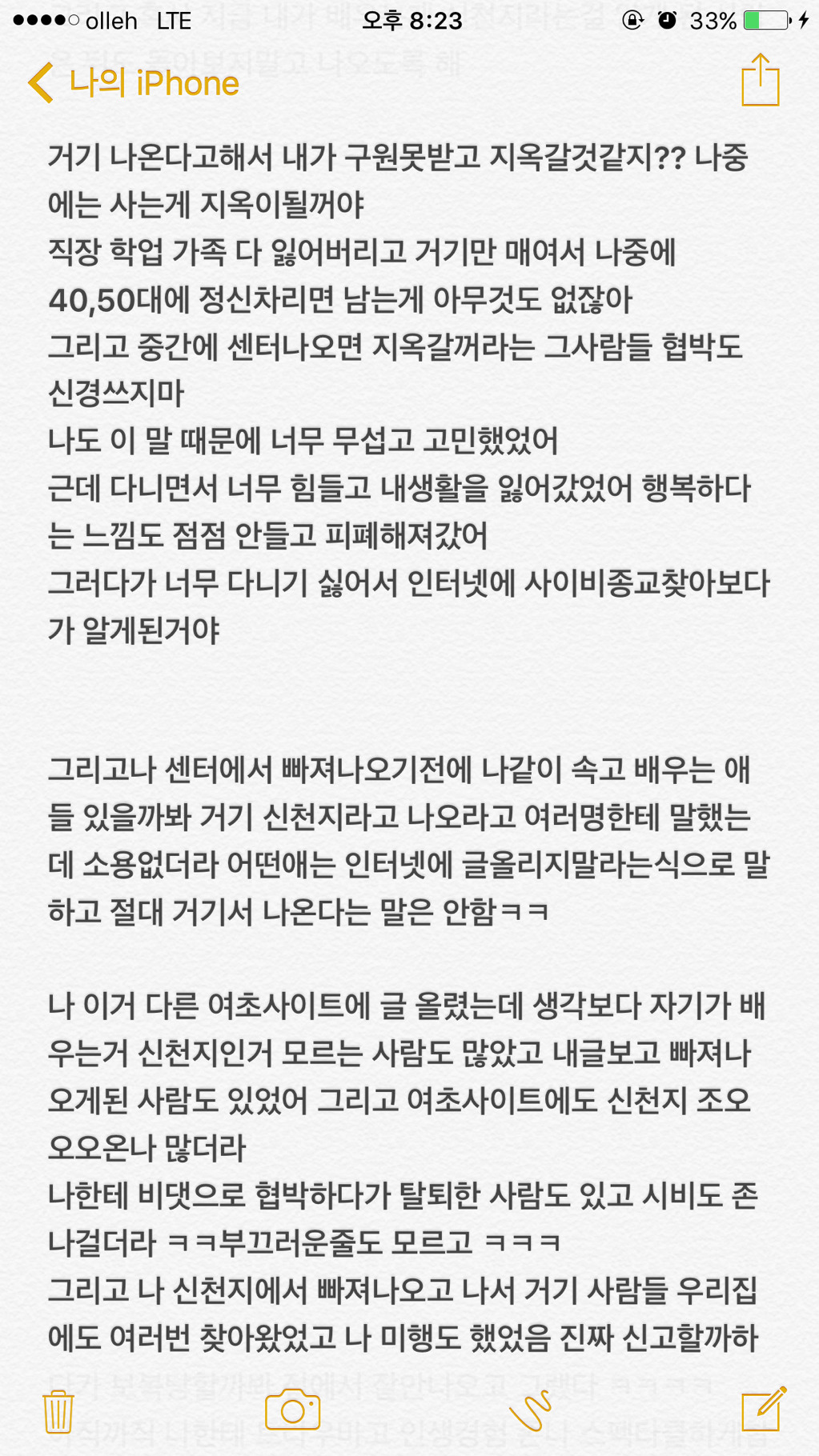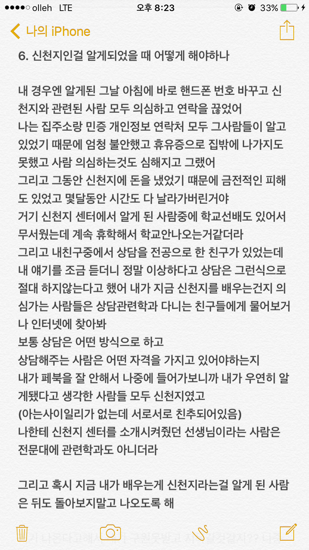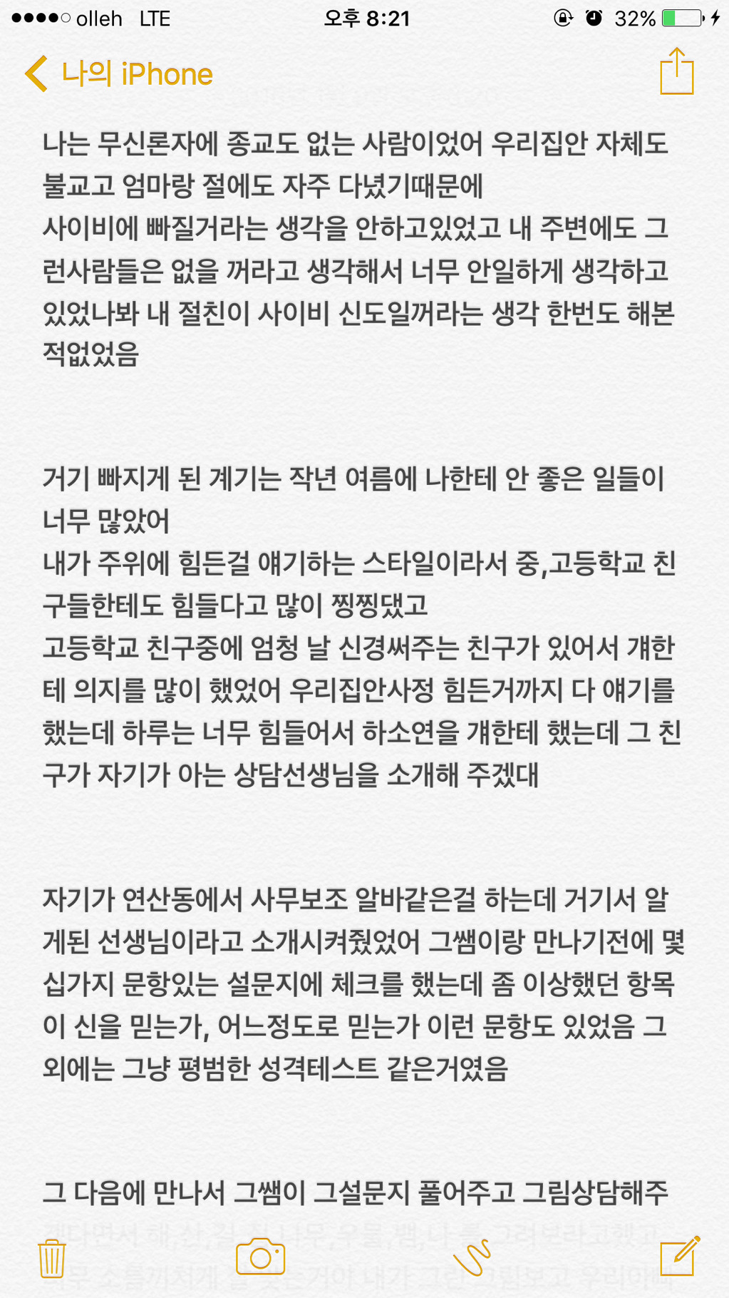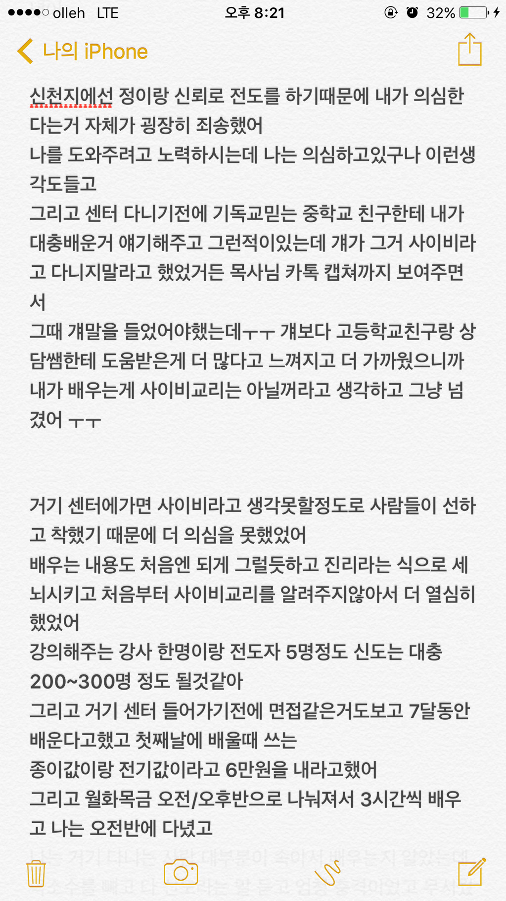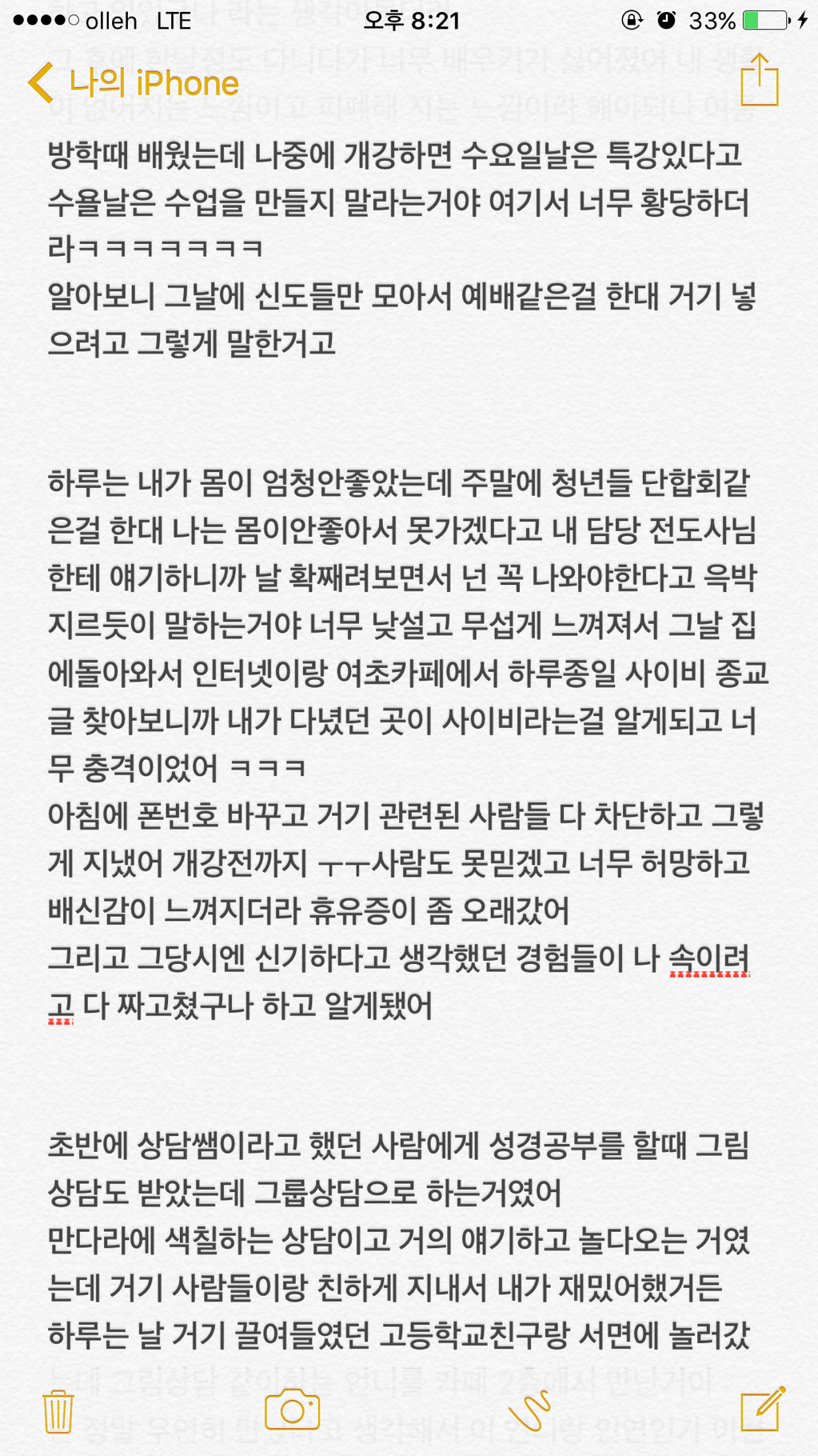 (원글쓴이에게)고생했어.. 나도 복음방앞에서 1인시위하다가 며칠간 미행당해봐서 그거 알아. 한동안은 주변 모든 사람이 신천지로 보이더라. 이제 신천지가 박멸은 안되더라도 숫자가 이전같은 속도로 늘순 없을거야. 너같은 사람들이 이렇게 글을 올려 주니깐. 신천지분들 상담 한번만이라도 들어보세요. 당신들이 이만희에게 속고 있는걸 알게 될거역요.