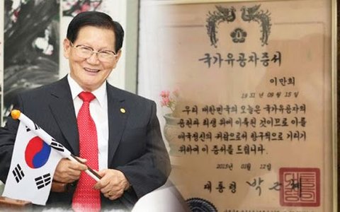 박근혜가 이만희에게 수여한 국가유공자 증서