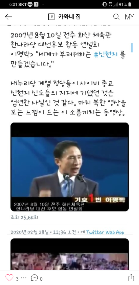 새누리당에서 공천 강제 탈락. (새누리당은 미래통합당의 전신)10. 미래통합당의 전신 한나라당에서 배출한 대통령 이명박그리고 이만희