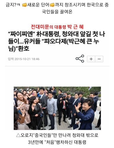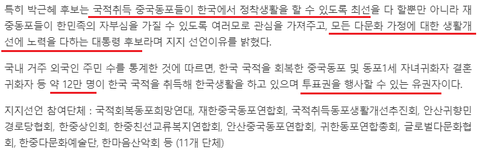 12. 2012년 대선 당시 소위 '중국 동포'라는 자들이 대거 나서서 박근혜 지지선언함.