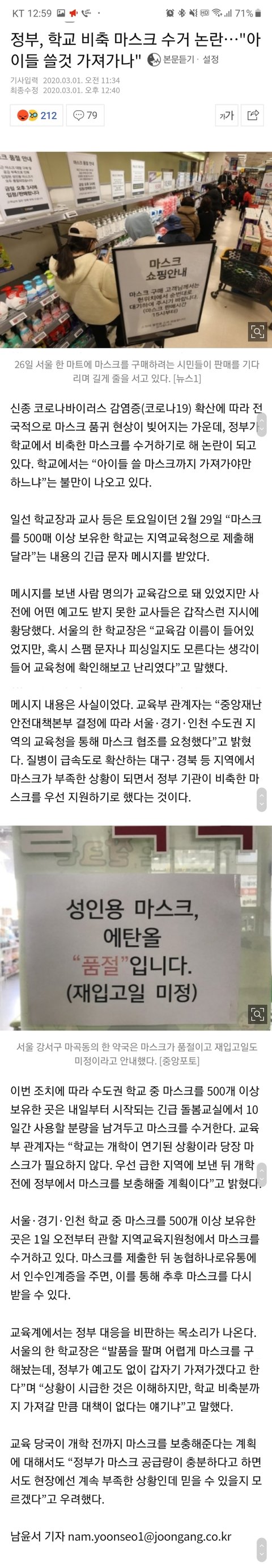 정부, 학교 비축 마스크 수거 논란…"아이들 쓸것 가져가나"