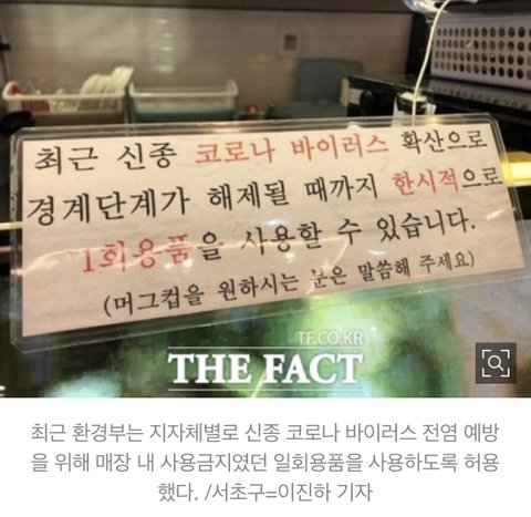 코로나 때문에 매장 내 일회용품 사용 법이 일시적으로 바뀌었어.