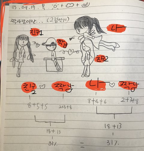 이건 반친구 질투하는거임ㅋㅋㅋㅋㅋㅋㅋ(이거는 앞에 내용이 좀 길어!! 내가 손 다쳐서 보건실 갔다가 교실 갔는데 걔가 교실 앞에서 있다가 나 들어오자마자 절케 말한거야)이건ㅋㅋㅋㅋㅋㅋㅋㅋㅋ이친구 좋아하는 애가 더 있었거든... 근데 둘다 내 친구라섴ㅋㅋㅋㅋ 이름점 그거 해본거.. 꼴에 나한테만 날개 달아놓은 것좀 봐 큐ㅠㅠㅠㅜㅠㅠㅠㅋㅋㅋㅋㅋ이거 진짜 항마력 딸려서 난 솔직히 보기 힘들다..ㅋㅋㅋㅋㅋ그래도 너네가 웃기다고 귀엽다고 해줘서 기분은 좋아졌어ㅎㅎㅎㅎ 아 얘가 어떤 애냐면 진짜 귀엽고 그냥 귀여운 애야ㅠㅜㅜ 또 착하고 재밌고ㅇㅇ 얘가 전학가서 연락은 끊겼는데 언제 한번 만나서 얘기라도 좀 해보고싶당