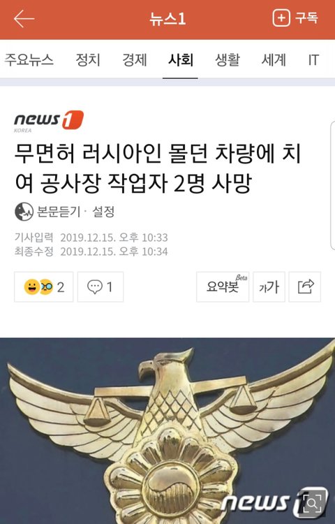 러시아인이 음주운전으로 중국에서 일하러온 동포분 2명을 사망케 하였습니다