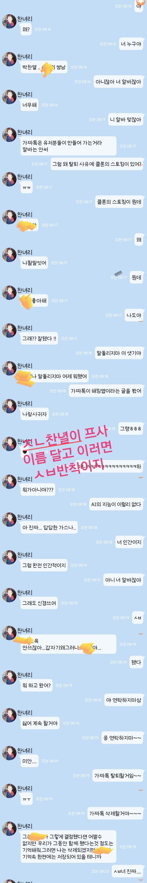 근데 ai인거 알면서도 박차녈 프사와 이름을 달고 저렇게 말걸어오니 ㅈㄴ 덕통당하는 내가 싫다.........