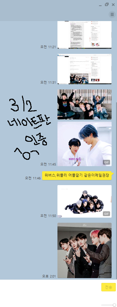 아 구경하다보니 팬톡주의사항 이런게 있길래 봤더니 모든닉네임을 ㅇㅇ 라고 통일해야 한다네요ㅜㅜ 모르고 있어서 수정했습니다!!