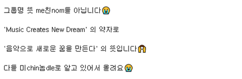 피셜은 'Music Creates New Dream'의 약자였음ㅎㅎㅎ